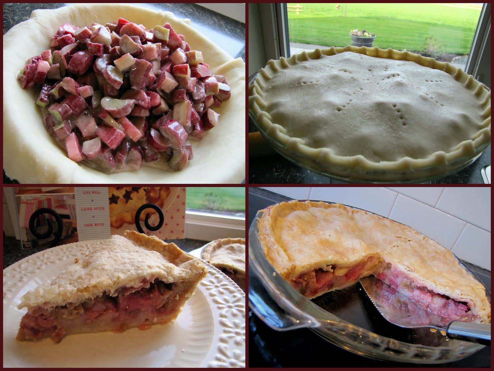 - Bake at 400°F for 15 minutes. Reduce heat to 35o°F and continue to bake for another 40 minutes...or until filling is bubbling and rhubarb is tender.